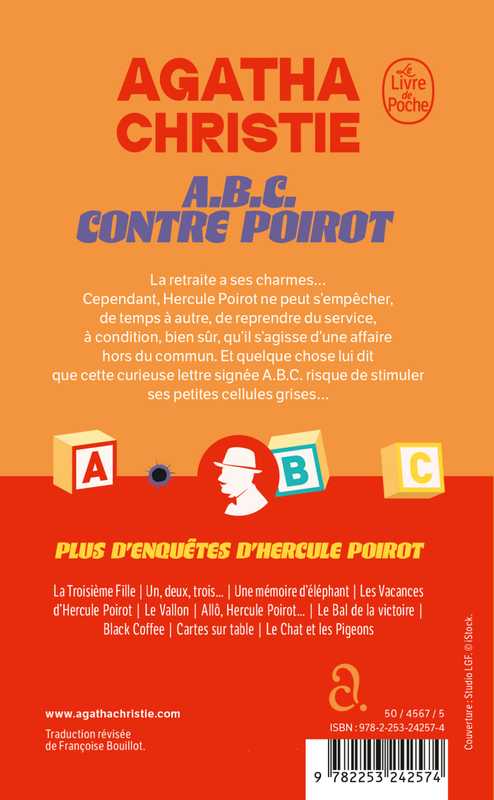 Bien sûr, la retraite a ses charmes… Cependant, Hercule Poirot ne peut s’empêcher, de temps à autre, de reprendre du service, à condition, bien sûr, qu’il s’agisse d’une affaire hors du commun. Et quelque chose lui dit que cette curieuse lettre signée A.B.C. risque de stimuler ses petites cellules grises…