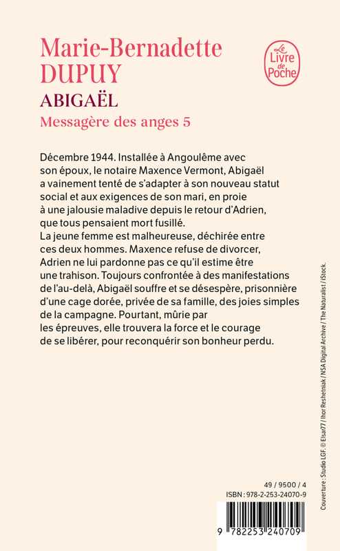 Décembre 1944. Installée à Angoulême avec son époux, le notaire Maxence Vermont, Abigaël a vainement tenté de s'adapter à son nouveau statut social et aux exigences de son mari, devenu d’une jalousie maladive depuis le retour d'Adrien, que tous pensaient mort fusillé.