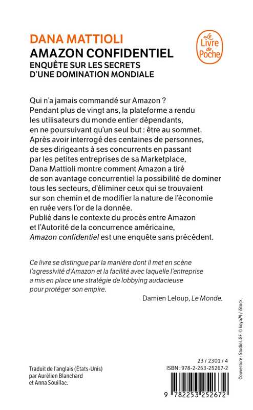 Qui n’a jamais commandé sur Amazon ? Pendant plus de vingt ans, la plateforme a rendu les utilisateurs du monde entier dépendants, en ne poursuivant qu’un seul but : être au sommet. Après avoir interrogé des centaines de personnes, de ses dirigeants à ses concurrents en passant par les petites entreprises de sa marketplace, Dana Mattioli montre comment Amazon a tiré de son avantage concurrentiel la possibilité de dominer tous les secteurs, d’éliminer ceux qui se trouvaient sur son chemin et de modifier la nature de l’économie en ruée vers l’or de la donnée. Publié dans le contexte du procès entre Amazon et l’autorité de la concurrence, Amazon confidentiel est une enquête sans précédent.