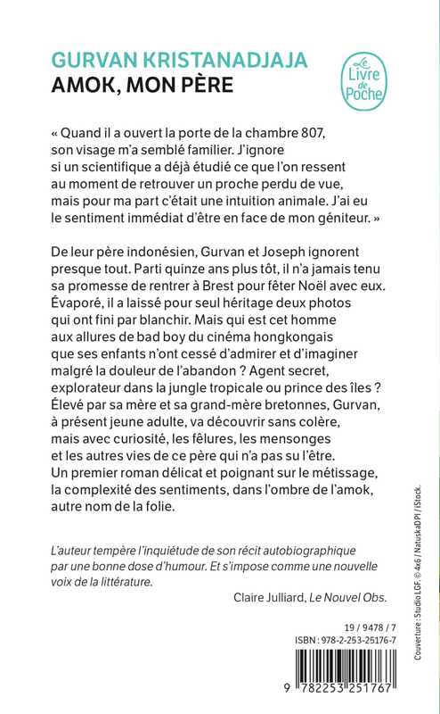 Un premier roman délicat et poignant sur le métissage, la complexité des sentiments, dans l’ombre de l’amok – autre nom de la folie.