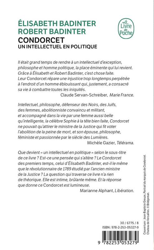 Que devient « un intellectuel en politique » selon le sous-titre de ce livre ? Est-ce une pensée qui s'altère ? Le Condorcet des premiers temps, celui d'Elisabeth Badinter, est-il le même que le révolutionnaire de 1789 étudié par l'ancien ministre de la Justice ? La question qui traverse ce livre n'a rien de théorique. Elle est intime, brûlante même. Et la réponse que donne ce Condorcet est lumineuse.