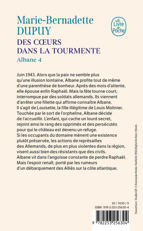 Juin 1943. Alors que la paix ne semble plus qu’une illusion lointaine, Albane profite tout de même d’une parenthèse de bonheur. Après des mois d’attente, elle épouse enfin Raphaël. Mais la fête tourne court, interrompue par des soldats allemands. Ils viennent d’arrêter une fillette qui affirme connaître Albane. Il s’agit de Louisette, la fille illégitime de Louis Molinier. Touchée par le sort de l’orpheline, Albane décide de l’accueillir. L’enfant, qui cache un lourd secret, rejoint ainsi le rang des opprimés et des persécutés pour qui le château est devenu un refuge.