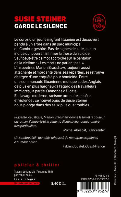 L'inspectrice Manon Bradshaw, toujours aussi attachante et mordante dans ses réparties, se retrouve chargée d'une enquête pour homicide. Entre une communauté lituanienne mutique et des Anglais de plus en plus hargneux à l'égard des travailleurs immigrés, la partie s'annonce délicate.