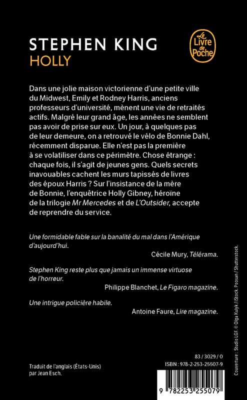 Sur l’insistance de la mère de Bonnie, l’enquêtrice Holly Gibney, héroïne de la trilogie Mr Mercedes et de L’Outsider, accepte de reprendre du service.