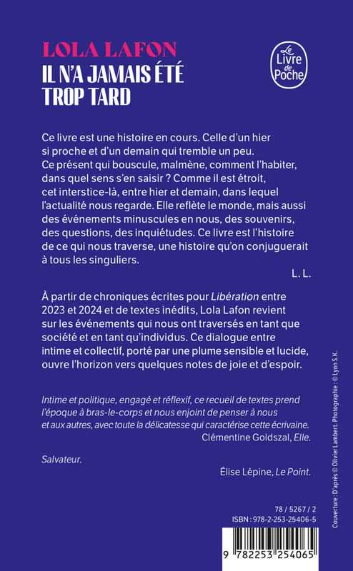 Ce livre est une histoire en cours. Celle d’un hier si proche et d’un demain qui tremble un peu. Ce présent qui bouscule, malmène, comment l’habiter, dans quel sens s’en saisir ? Comme il est étroit, cet interstice-là, entre hier et demain, dans lequel l’actualité nous regarde. Elle reflète le monde, mais aussi des événements minuscules en nous, des souvenirs, des questions, des inquiétudes. Ces pages ne sont pas le lieu d’un territoire conquis, d’un terrain marqué de certitudes. Ce livre est l’histoire de ce qui nous traverse, une histoire qu’on conjuguerait à tous les singuliers.