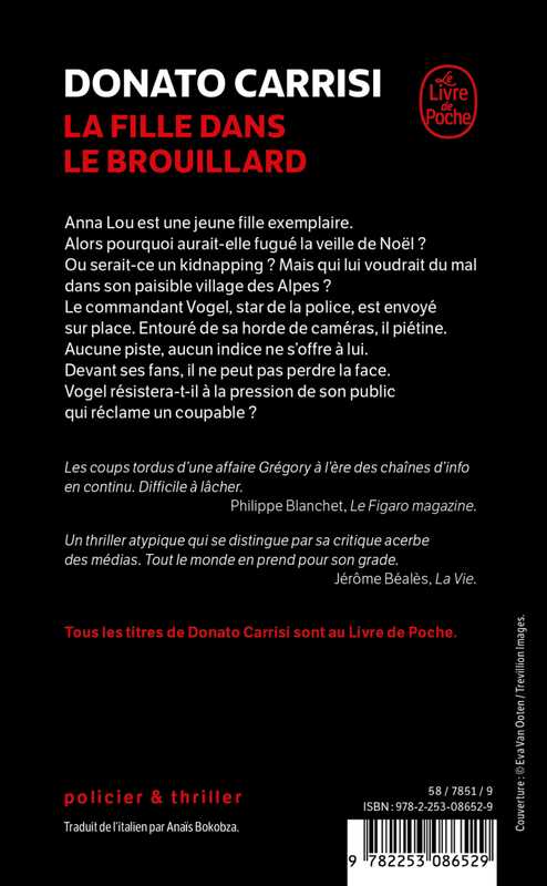 Anna Lou est une jeune fille exemplaire. Alors pourquoi aurait-elle fugué la veille de Noël ? Ou serait-ce un kidnapping ? Mais qui lui voudrait du mal dans son paisible village des Alpes ? Le commandant Vogel, star de la police, est envoyé sur place. Entouré de sa horde de caméras, il piétine. Aucune piste, aucun indice ne s'offre à lui. Devant ses fans, il ne peut pas perdre la face. Vogel résistera-t-il à la pression de son public qui réclame un coupable ?