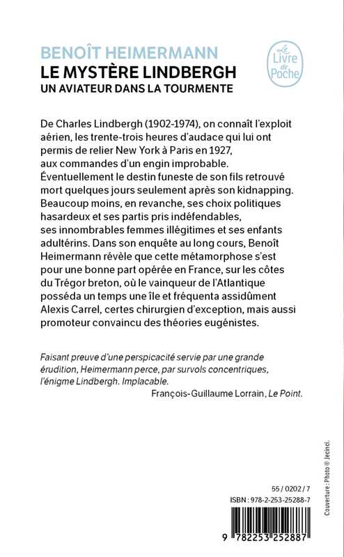 De Charles Lindbergh (1902-1974), on connaît l’exploit aérien, les trente-trois heures d’audace qui lui ont permis de relier New York à Paris, en 1927, aux commandes d’un engin improbable. Éventuellement le destin funeste de son fils retrouvé mort quelques jours seulement après son kidnapping. Beaucoup moins, en revanche, ses choix politiques hasardeux et ses partis pris indéfendables, ses innombrables femmes illégitimes et ses enfants adultérins. Dans son enquête au long cours, Benoît Heimermann révèle que cette métamorphose s’est pour une bonne part opérée en France, sur les côtes du Trégor breton, où le vainqueur de l’Atlantique posséda un temps une île et où il fréquenta assidûment Alexis Carrel, certes chirurgien d’exception, mais aussi promoteur convaincu des théories eugénistes.