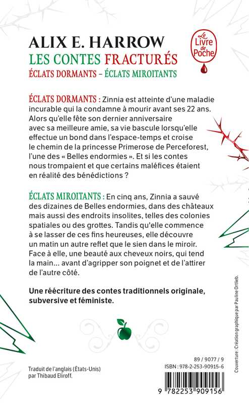 Éclats miroitants : Grâce au multivers, Zinnia a passé le cap décisif des 21 ans. En cinq ans, elle a sauvé des dizaines de Belles endormies, dans des châteaux mais aussi des endroits insolites, telles des colonies spatiales ou des grottes. Alors qu’elle commence à se lasser de ces fins heureuses, elle découvre un matin un autre reflet qu’elle-même dans le miroir. Face à elle, une beauté aux cheveux noirs, qui tend la main… avant d’agripper le poignet de Zinnia et de l’attirer de l’autre côté du miroir.