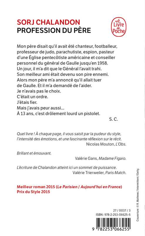 Mon père disait qu'il avait été chanteur, footballeur, professeur de judo, parachutiste, espion, pasteur d'une Église pentecôtiste américaine et conseiller personnel du général de Gaulle jusqu'en 1958. Un jour, il m'a dit que le Général l'avait trahi. Son meilleur ami était devenu son pire ennemi. Alors mon père m'a annoncé qu'il allait tuer de Gaulle. Et il m'a demandé de l'aider.