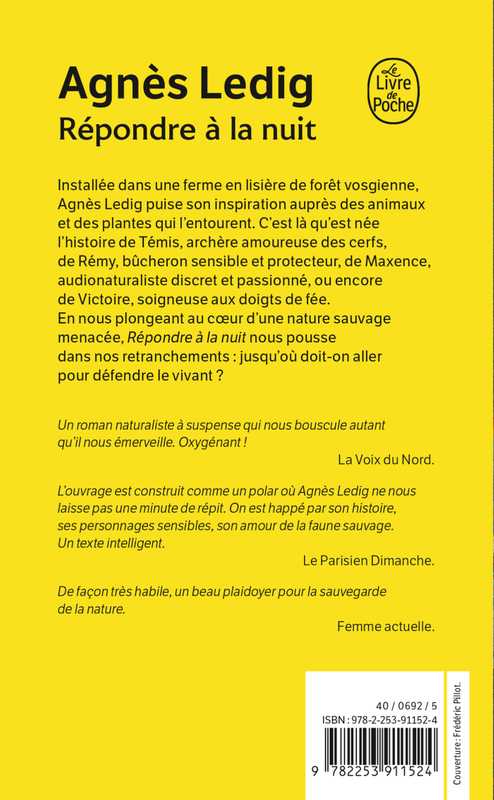 L’ouvrage est construit comme un polar où Agnès Legig ne nous laisse pas une minute de répit. On est happé par son histoire, ses personnages sensibles, son amour de la faune sauvage. Un texte intelligent. Le Parisien dimanche.