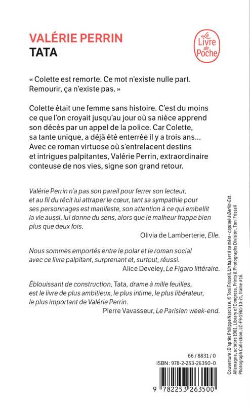 Éblouissant de construction, Tata, drame à mille feuilles, est le livre de plus ambitieux, le plus intime, le plus libérateur, le plus important de Valérie Perrin. Pierre Vavasseur, Le Parisien week-end.
